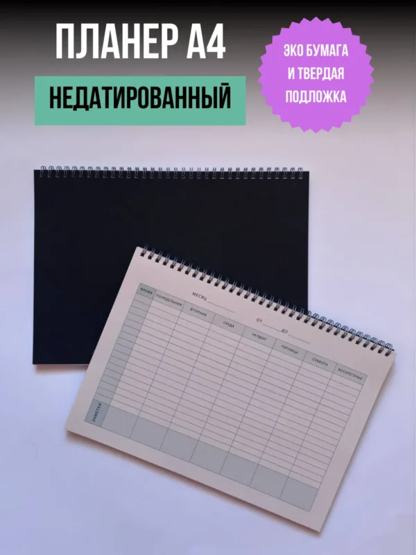 Планер — это эстетичный еженедельник, который обладает локоничным дизайном и поможет вам достичь цели и составить план на неделю или на год вперёд. Наш настольный планер на неделю формата А4 — это именно то, что вам нужно! Этот стильный и удобный планировщик задач поможет вам организовать свою жизнь и избавиться от необходимости всё держать в голове.